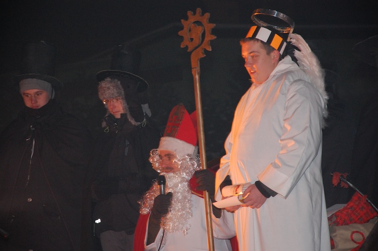 Św. Mikołaj przybył do nas w niebiańskim orszaku, pomimo dużego mrozu, na parkingu przed kościołem witały go tłumy parafian i gości. Po przywitaniu naszego specjalnego gościa, rozpoczął się czas wspólnej zabawy i radosnej rywalizacji między aniołkami a diabełkami. Dzięki zaciętej rywalizacji z minuty na minutę atmosfera stawała się coraz gorętsza. Po zakończonym spotkaniu przy kościele Święty Mikołaj odwiedził grzeczne dzieci w ich domach. Tegoroczny Korowód św. Mikołaja prowadzili Kawalerowie Orderu Uśmiechu z Żywiecczyzny: Władysława Klinowska, Władysława Deka, dr Janusz Wyrwalski, ks. Piotr Sadkiewicz. Uroczystość zgromadziła około 1.000 osób.