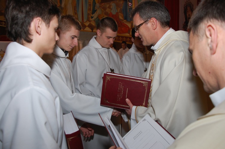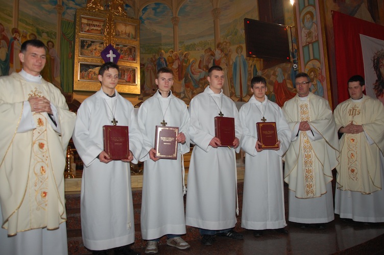 W Wielki Czwartek w katedrze w Bielsku-Białej ks. biskup Tadeusz Rakoczy pobłogosławił nowych 94 animatorów Służby Liturgicznej. Wśród nich znalazło się 4 lektorów z naszej Parafii: Maciej Kawalec, Artur Sanetra, Marcin Stokłosa oraz Patryk Zuziak. Podczas Mszy św. Wieczerzy Pańskiej ks. Proboszcz wręczył animatorom pamiątkowe Pisma św.