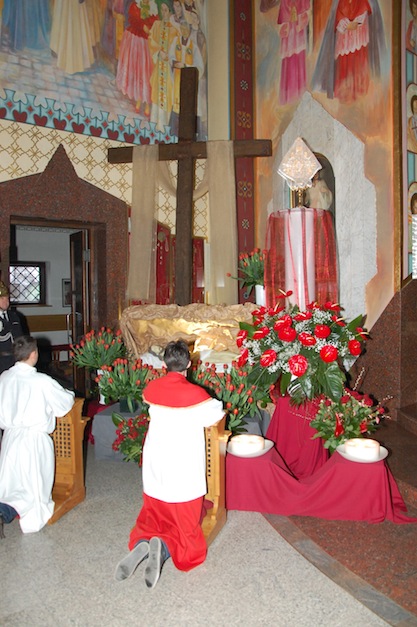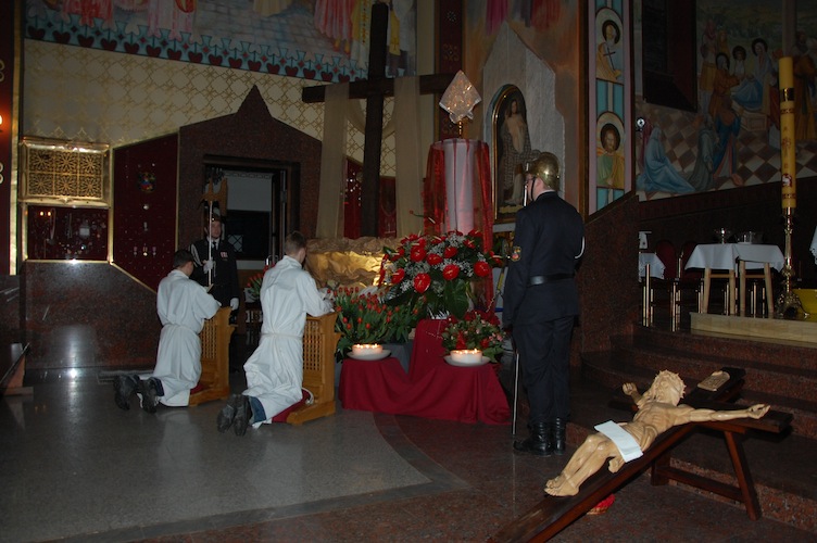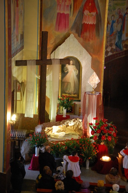 Po Liturgii Wielkiego Piątku nastąpiło przeniesienie Najświętszego Sakramentu do symbolicznego Grobu Pańskiego.