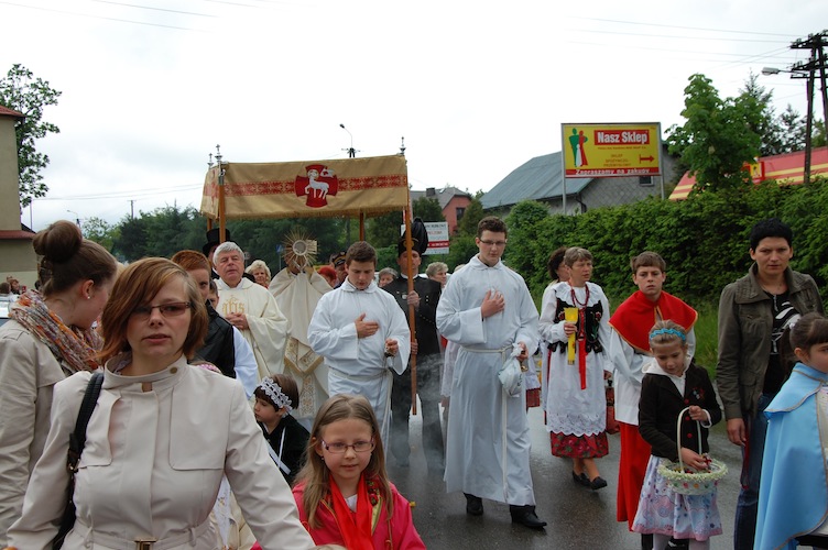 W czwartek, 30 maja 2013 r., przeżywaliśmy Uroczystość Najświętszego Ciała i Krwi Pańskiej – Boże Ciało. Po Mszy św. o godzinie 9:30 z kościoła parafialnego wyruszyła procesja Eucharystyczna.