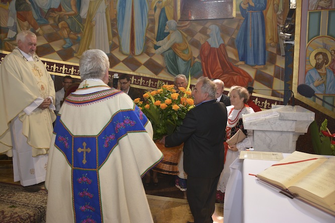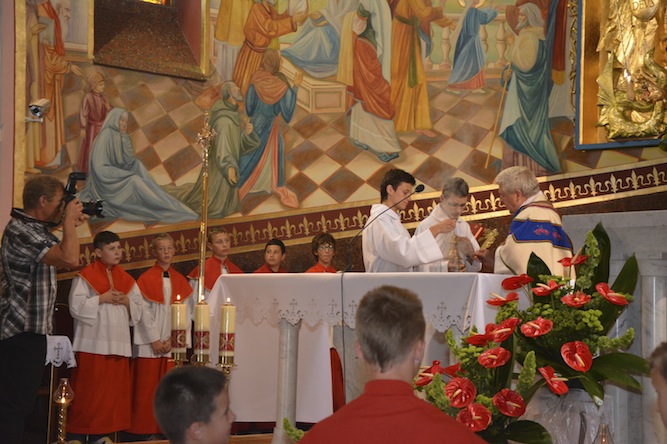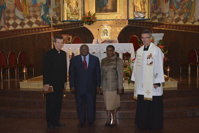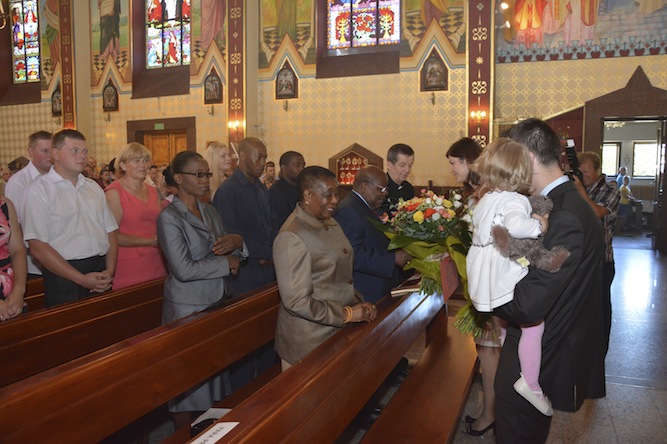 W niedzielę, 21 lipca 2013 r., na mszy św. o godzinie 11:00 obchodziliśmy Uroczystość 40-lecia Kapłaństwa ks. Andrzeja Urbańskiego. Uroczystość swoją obecnością zaszczycił były prezydent Tanzanii pan Benjamin Mkapa z żoną. Dzisiejsza uroczystość była dla całej naszej Parafii okazją, by podziękować Bogu za dar kapłaństwa naszego wielkiego Rodaka – ks. Andrzeja. Nasz Rodak przez 40 lat swojej posługi był szczególnym ambasadorem naszej Parafii, wpierw jako misjonarz w Tanzanii, a następnie przez 20 lat jako Generał Salwatorianów. Po mszy św. nastąpiło odsłonięcie pamiątkowej tablicy ku czci ks. Andrzeja Urbańskiego. Ks. Proboszcz oraz ks. Andrzej po mszy św. poświęcili parafialnego busa, który w ostatnich dniach służył jako limuzyna prezydencka, a na co dzień wykorzystywany jest do pracy duszpasterskiej z dziećmi i młodzieżą naszej Parafii.