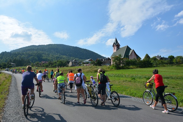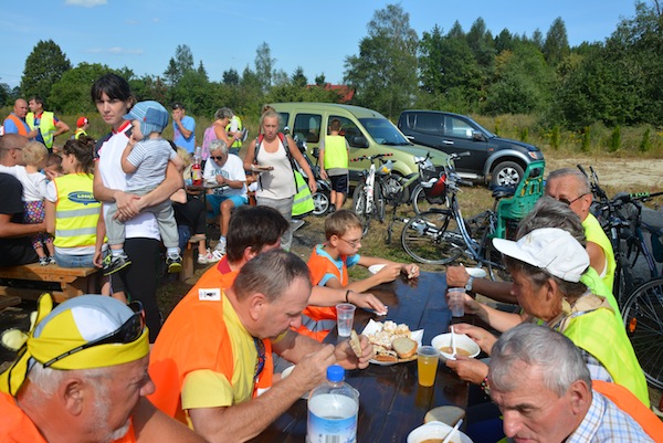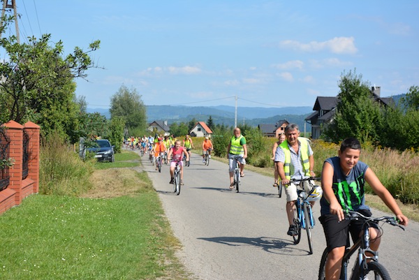 W niedzielne popołudnie, 25 sierpnia, prawie 220 rowerzystów wzięło udział w kolejnym już Rodzinnym Rajdzie Rowerowym. W tym roku trasa rajdu przebiegała pętlą: Twardorzeczka, Ostre, Zimnik, Lipowa, Leśna. Rajd zakończyliśmy na bosiku LKS w Leśnej, gdzie na wszystkich czekały same pyszności: grochówka, kiełbasa z grilla i ciasta. Tutaj też przeprowadzone zostały konkurencje sportowe. Ojcowie i matki konkurowali ze sobą w „zakręconym” sprincie, a dzieci spróbowały swoich możliwości w „kelnerskich biegach” i w rzucie strażackim gumowcem. Na koniec nagrodzeni zostali: najliczniejsza rodzina biorąca udział w rajdzie oraz najstarszy i najmłodszy uczestnik rajdu. Dziękujemy wszystkim uczestnikom, organizatorom i sponsorom tegorocznego rajdu.