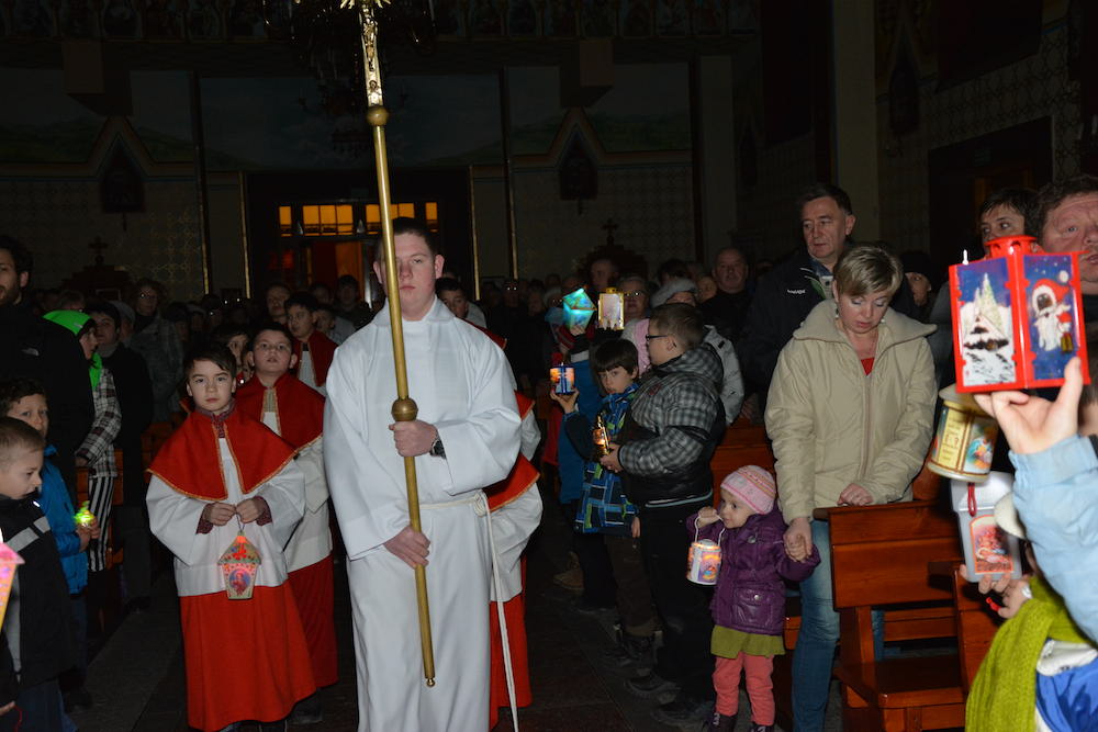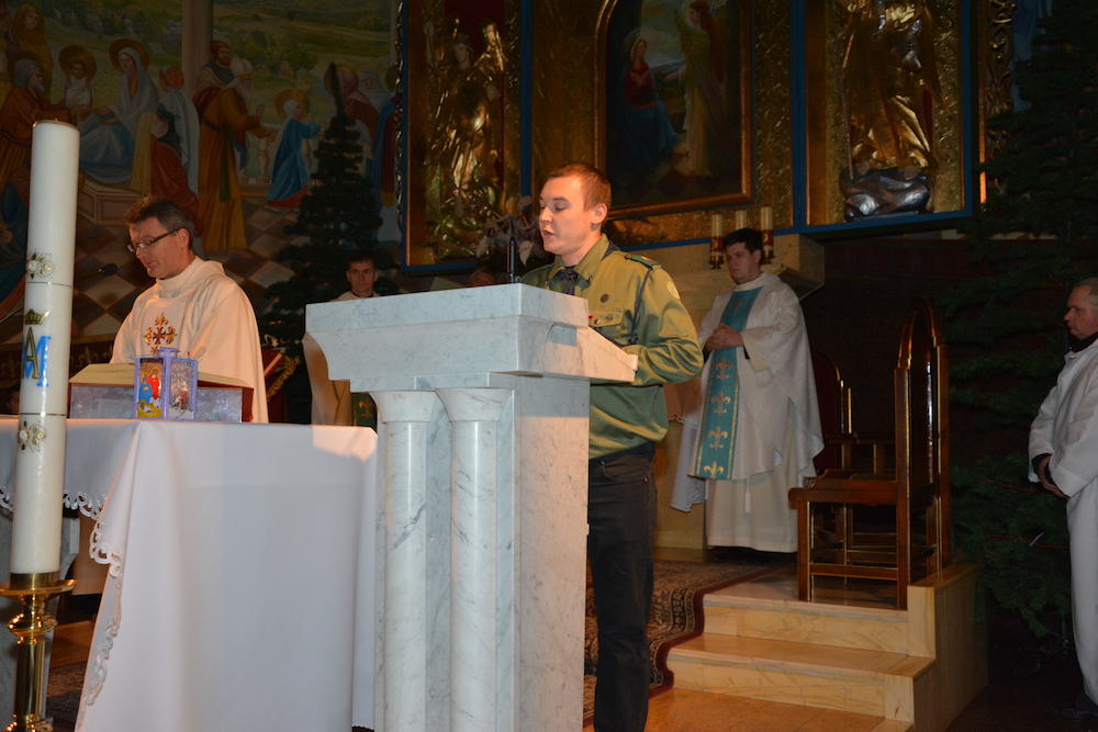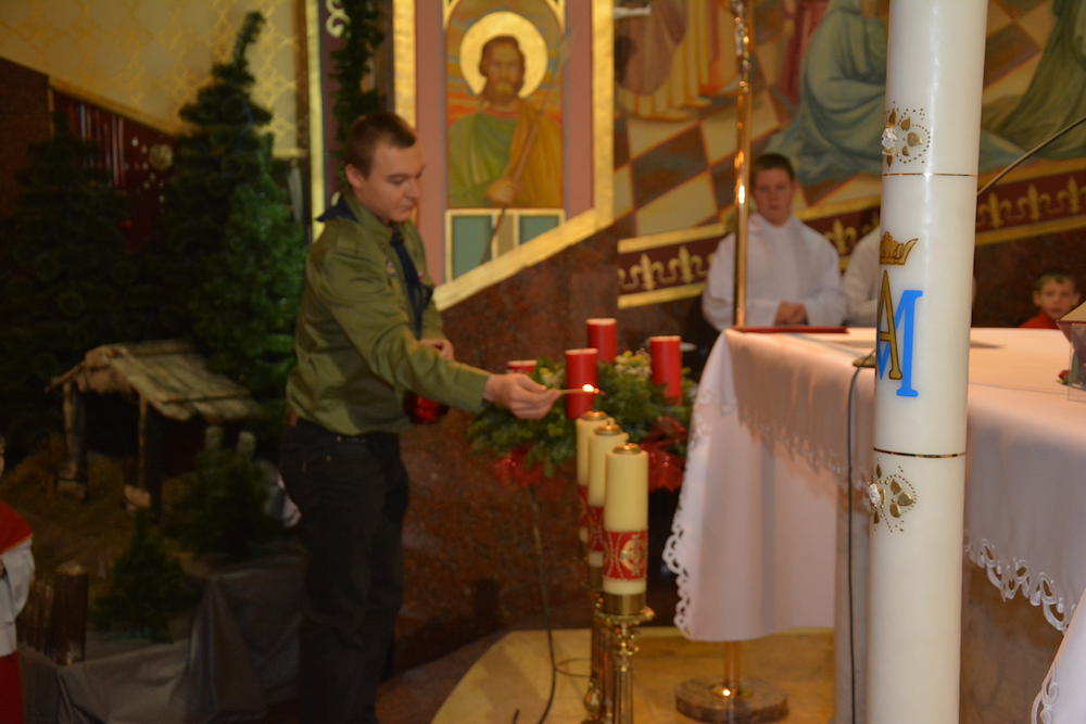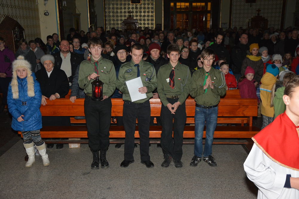 W Wigilię Bożego Narodzenia, 24 grudnia 2013 r., przeżywaliśmy ostatnią Mszę św. Roratnią w tym roku liturgicznym. Podczas Eucharystii modliliśmy się w intencji wszystkich zmarłych, którzy odeszli do Pana w ostatnim roku. W czasie liturgii nastąpiło uroczyste przekazanie naszej wspólnocie parafialnej ognia betlejemskiego, przyniesionego do naszej świątyni przez harcerzy z żywieckiego hufca.