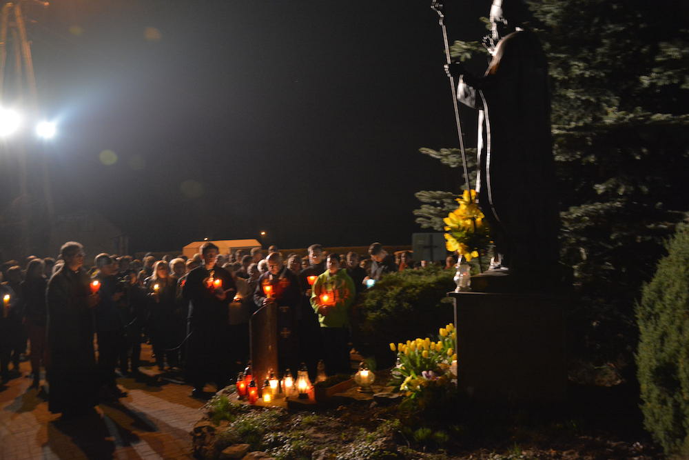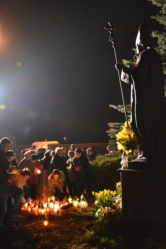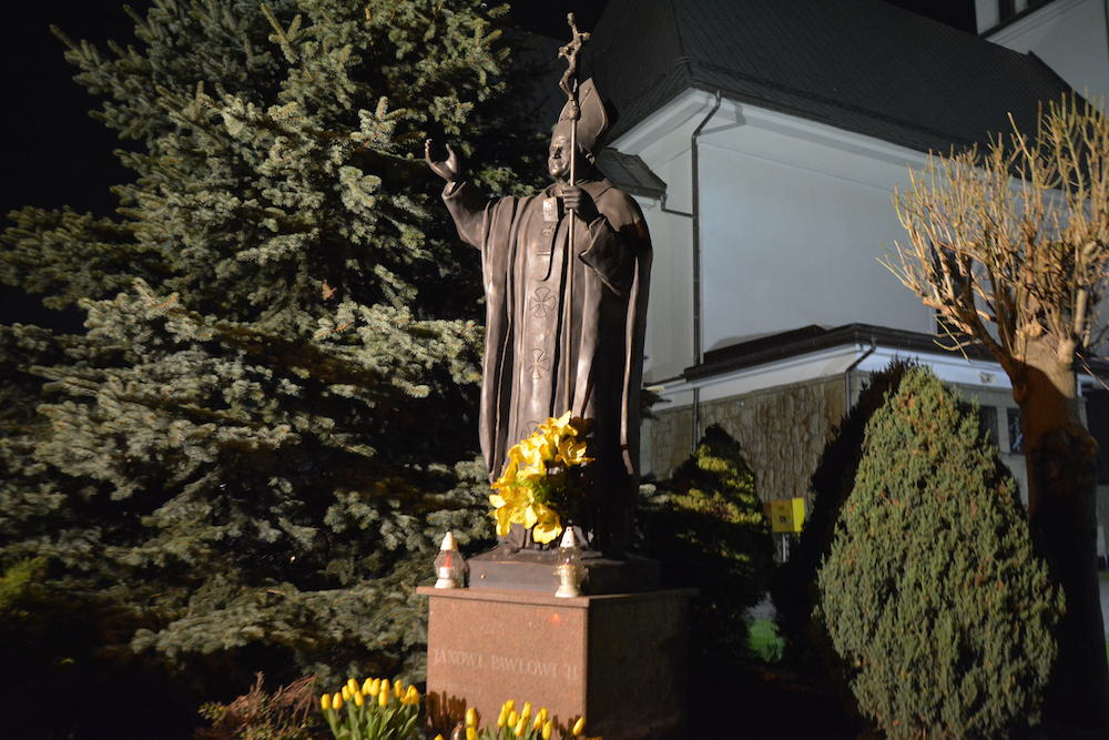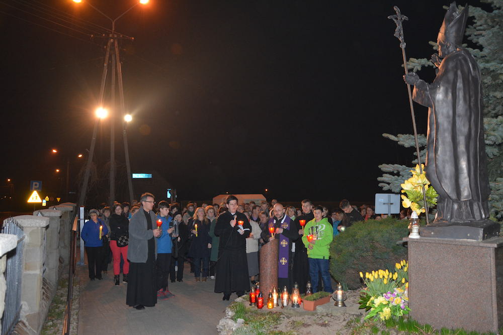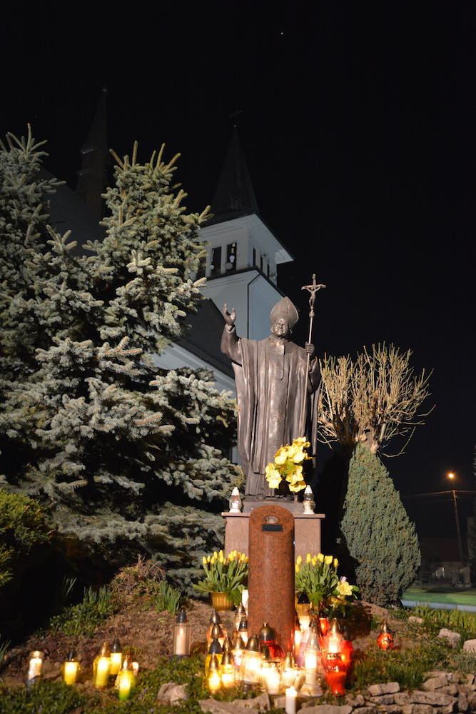 W środę, 2 kwietnia 2014 r., po Misyjnym dzwonie pokutnym modliliśmy się wspólnie przed pomnikiem bł. Jana Pawła II, dziękując Bogu za dar życia naszego wielkiego Polaka oraz prosząc za Jego wstawiennictwem o Boże błogosławieństwo dla rodzin naszej Parafii.