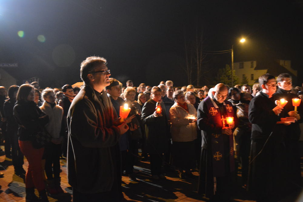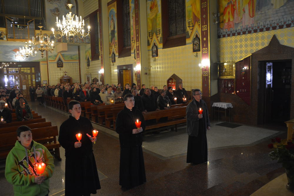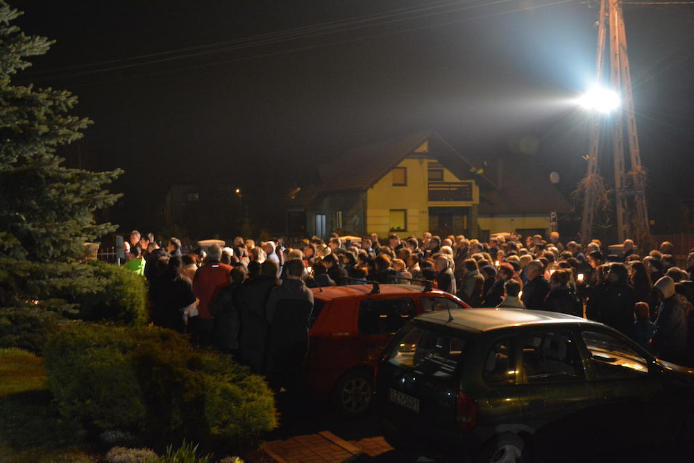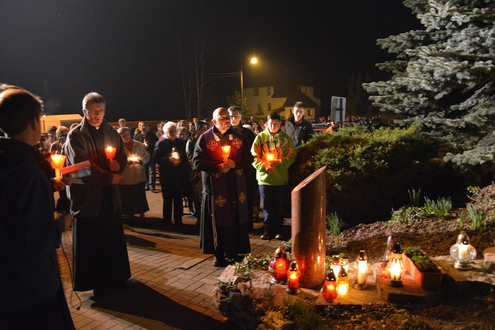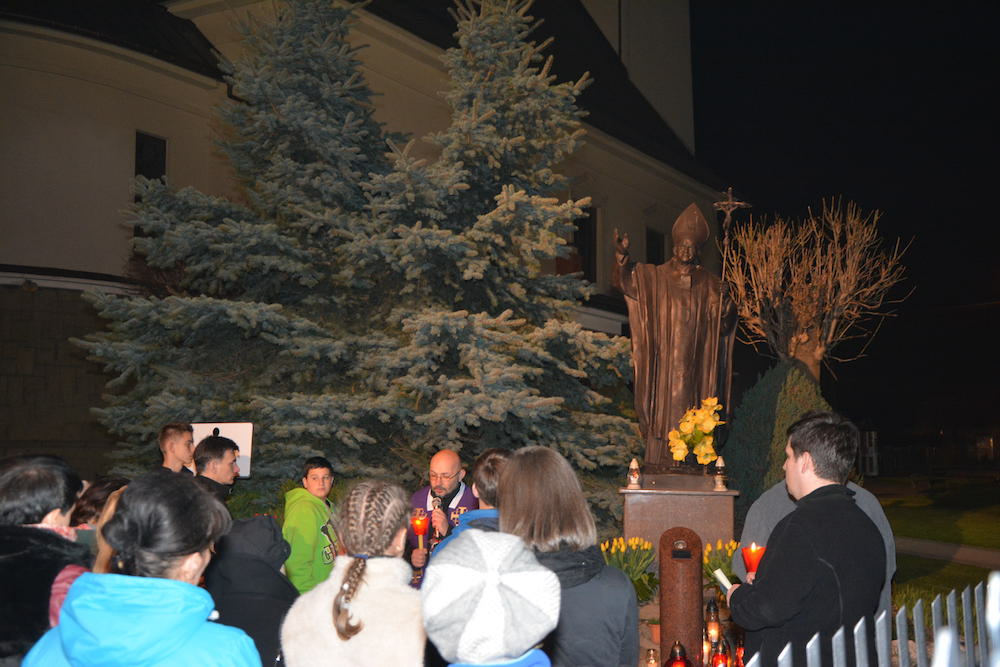 W środę, 2 kwietnia 2014 r., po Misyjnym dzwonie pokutnym modliliśmy się wspólnie przed pomnikiem bł. Jana Pawła II, dziękując Bogu za dar życia naszego wielkiego Polaka oraz prosząc za Jego wstawiennictwem o Boże błogosławieństwo dla rodzin naszej Parafii.