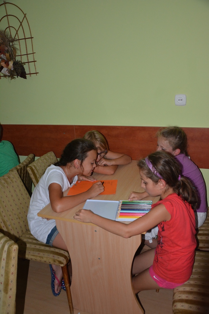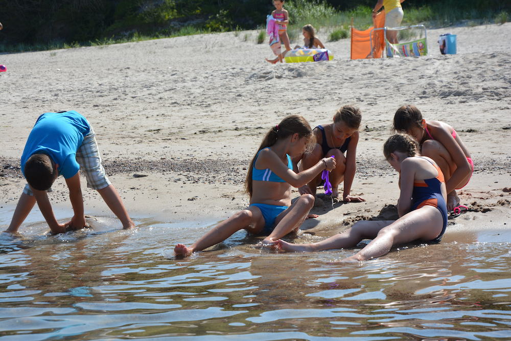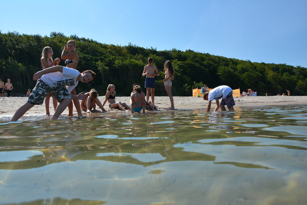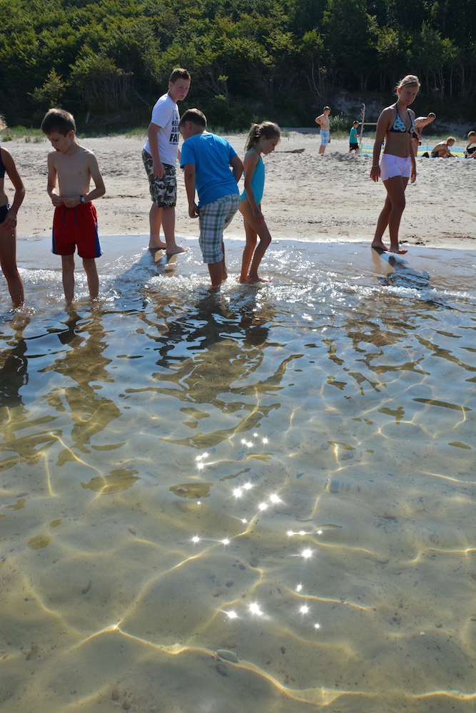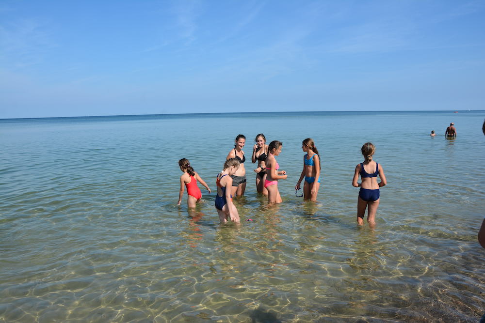 Sobota była kolejnym dniem, kiedy mogliśmy cieszyć się piękną pogodą. Praktycznie cały dzień spędziliśmy na plażowaniu i kąpielach w Bałtyku, który przez ostatnie dwa dni był bardzo spokojny, a przy tym krystalicznie czysty. Wieczorem wspólnie układaliśmy hymn kolonijny oraz tworzyliśmy herby każdego pokoju.