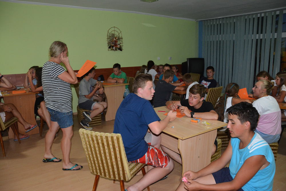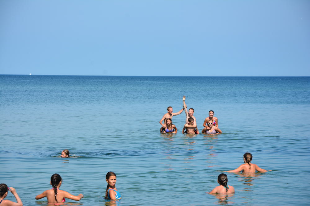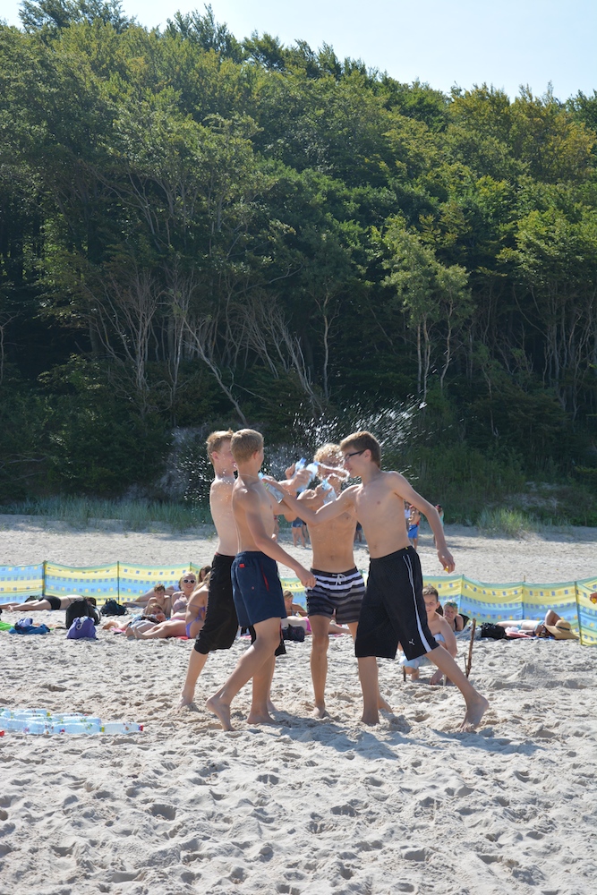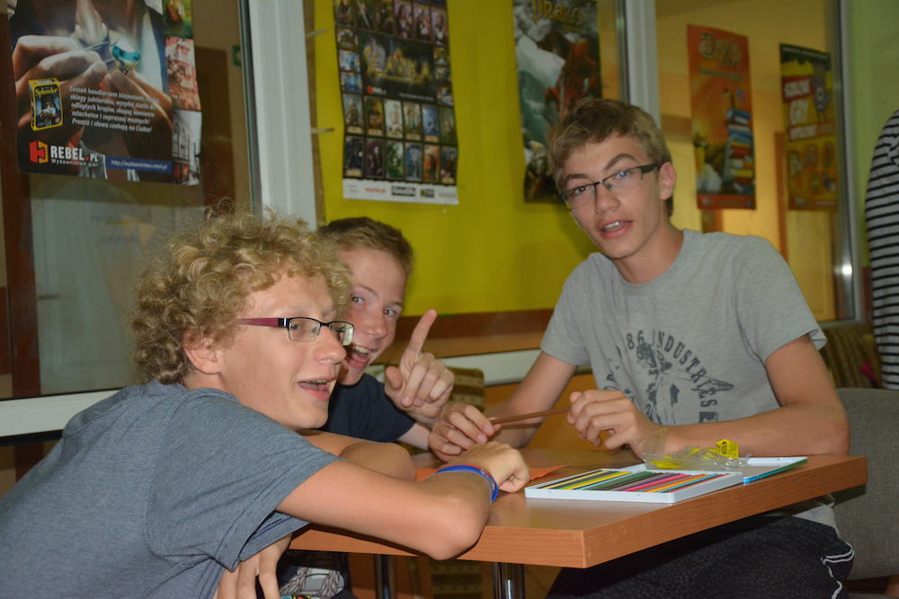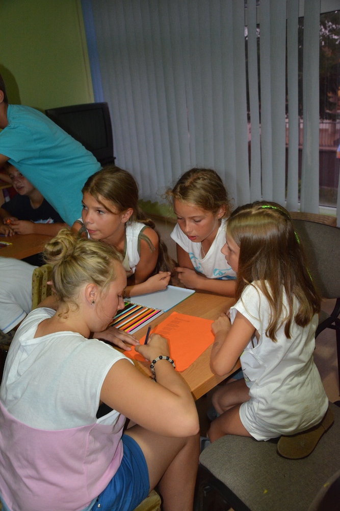 Sobota była kolejnym dniem, kiedy mogliśmy cieszyć się piękną pogodą. Praktycznie cały dzień spędziliśmy na plażowaniu i kąpielach w Bałtyku, który przez ostatnie dwa dni był bardzo spokojny, a przy tym krystalicznie czysty. Wieczorem wspólnie układaliśmy hymn kolonijny oraz tworzyliśmy herby każdego pokoju.