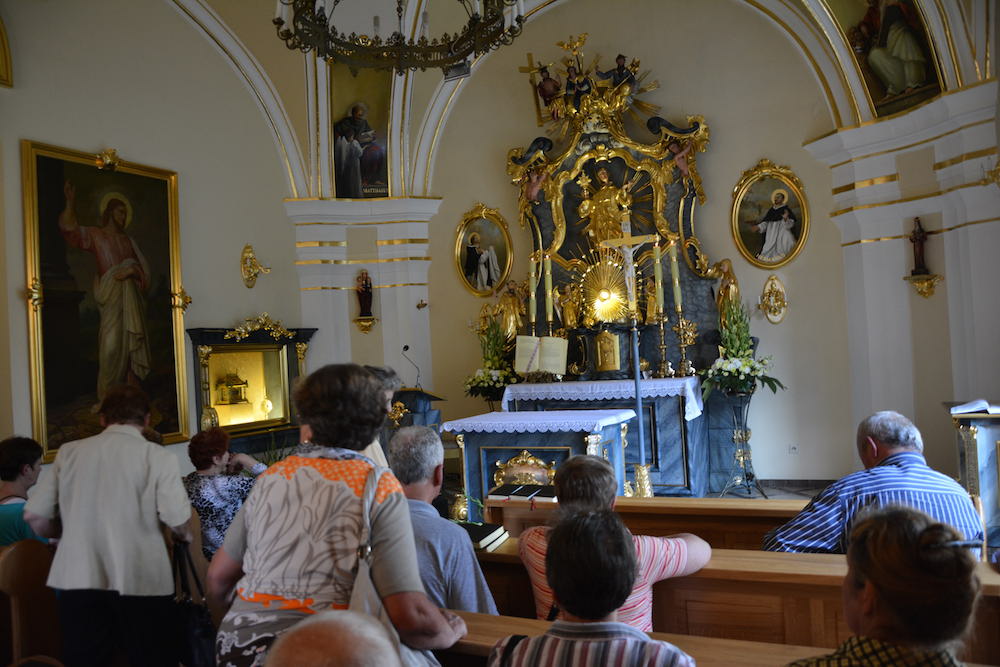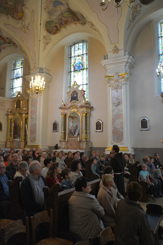 W sobotę, 6 września 2014 r., grupa 50 osób z naszej Parafii wyruszyła na pielgrzymi szlak. Pierwszym miejscem naszego pielgrzymowania była Góra Świętej Anny, gdzie poznaliśmy historię sanktuarium św. Anny Samotrzeciej. Podczas mszy św. modliliśmy się za wszystkie rodziny naszej Parafii, polecając je Bogu za wstawiennictwem św. Anny. W tej samej intencji modliliśmy się podczas drogi krzyżowej, którą odprawiliśmy u stóp sanktuarium. Kolejnym miejscem naszej pielgrzymki była Moszna, gdzie zwiedzaliśmy i poznaliśmy historię zamku Wincklerów. Ostatnim miejscem naszego pielgrzymowania był Kamień Śląski – miejsce urodzenia św. Jacka, bł. Czesława i bł. Bronisławy. Tam nawiedziliśmy sanktuarium św. Jacka i zwiedziliśmy pałac rodziny Odrowążów.