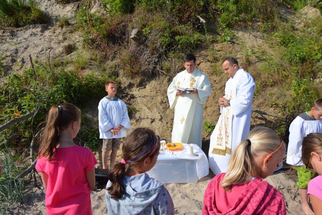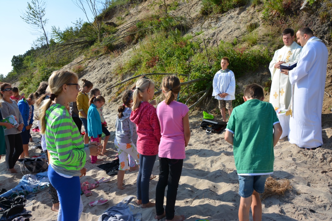 Wtorek to niestety ostatni dzień naszej wspaniałej kolonii. Rozpoczęliśmy go od porannej mszy św. nad morzem. Było to wydarzenie niezapomniane dla każdego z nas. Wokół nas piękno przyrody, nadmorski klif, a za nami bezkres morza. Po pysznym śniadanku udaliśmy się na ostatnie zakupy w urokliwym Chłapowie, co by do domu nie wrócić z pustymi rękami. Po południu był czas na ostatnie morskie kąpiele oraz niestety pożegnanie z morzem. Potem pakowanie, porządkowanie pokoi. O godzinie 20:00 wyruszyliśmy w drogę powrotną do naszych domów.