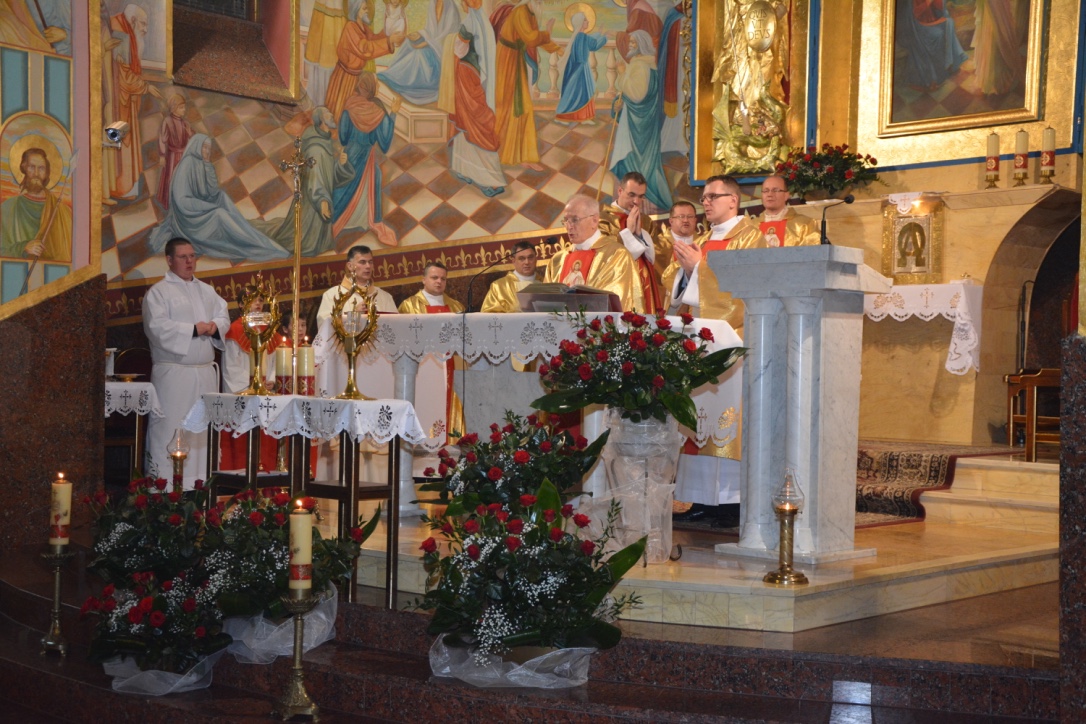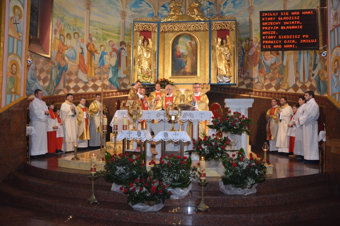 W czasie peregrynacji obrazu Jezu Ufam Tobie, podczas mszy św. o godzinie 21:00 modliliśmy się o nowe i święte powołania z naszej Parafii. Eucharystii przewodniczył i kazanie wygłosił ks. prałat Stanisław Podziorny. Mszę św. koncelebrowali kapłani, którzy pochodzą z naszej parafii oraz kapłani, którzy pracowali w naszej wspólnocie.