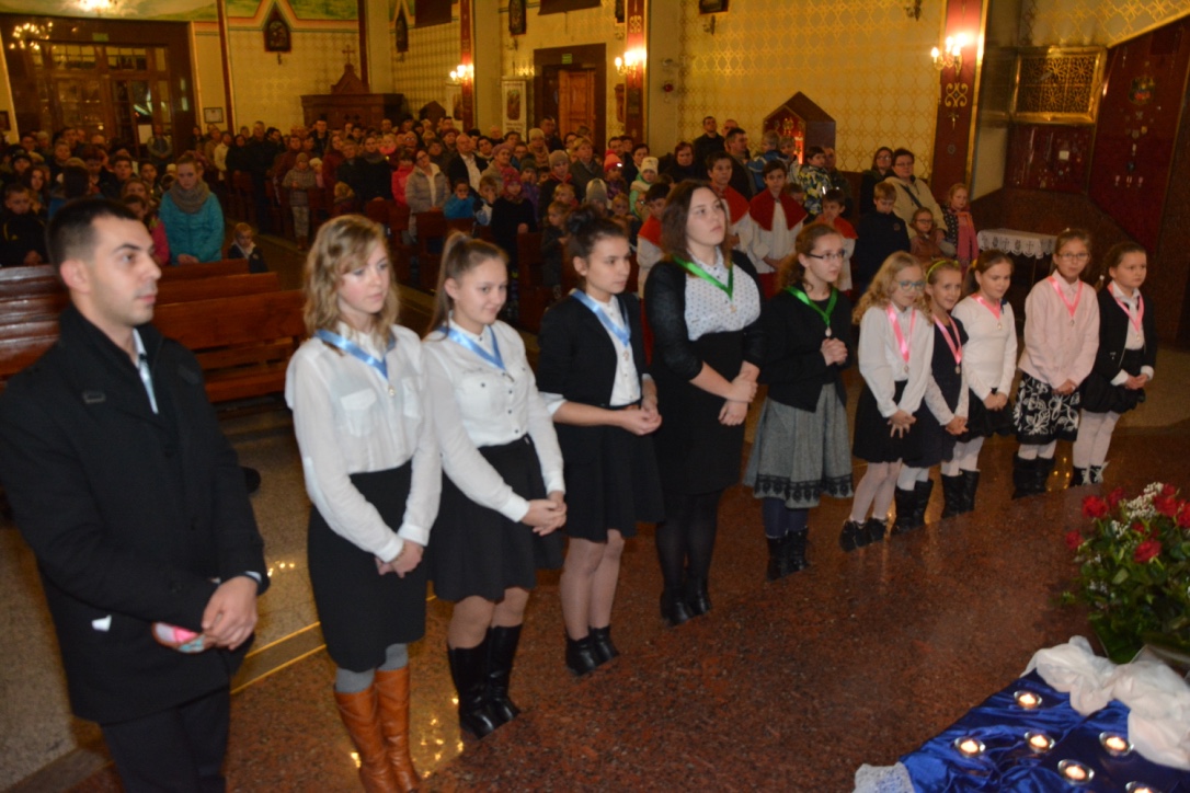 W Uroczystość Niepokalanego Poczęcia swoje święto przeżywała wspólnota Dzieci i Młodzieży Maryi z naszej Parafii. Podczas mszy św. o godzinie 17:30 członkowie tej wspólnoty odnowili akt zawierzenia Niepokalanej, a także przyjęli Medale Maryjne.