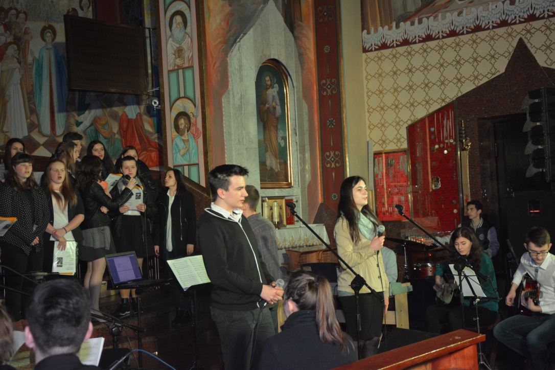 W piątek, 8 kwietnia 2016 r., w naszym kościele odbył się koncert uwielbienia, podczas którego wystąpił chór młodzieżowy oraz zespół instrumentalny.