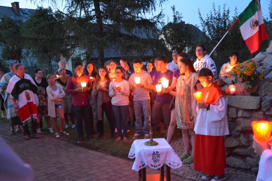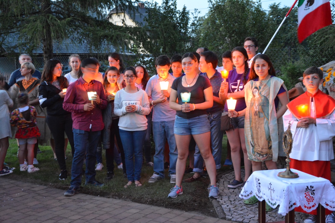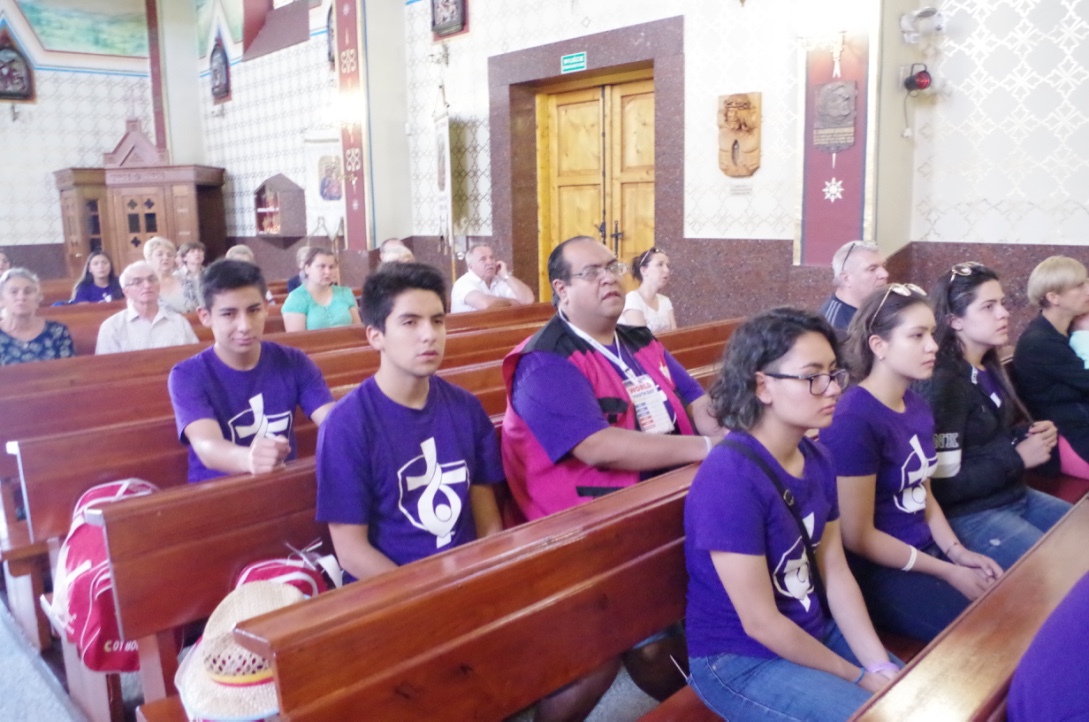 Od wtorku w naszej Parafii przebywa grupa 17 osób z Toluca w Meksyku. Przez te dni młodzież realizuje program przygotowany przez Diecezjalny Komitet Światowych Dni Młodzieży. Młodzi zwiedzali: obóz Auschwitz Birkenau, miasto Oświęcim, Elektrownię na Żarze, sanktuarium św. Mikołaja w Pierśćcu, Kaplicówkę, Koniaków, Żywiec, Golgotę Beskidów, Dolinę Zimnika. Sobota była dniem, w którym młodzież spędziła w naszej Parafii. Wspólnie z Parafianami modlili się podczas mszy św., po czym przystąpili do prac porządkowych wokół kościoła. Kolejnym punktem programu był tradycyjny polski obiad na plebanii. Po pysznym cieście i kawie młodzi wyruszyli do Aquaparku. Następnie znaleźli czas na międzynarodowe potyczki w piłkę plażową. Wieczorem odbył się grill dla naszych młodych gości oraz rodzin, które ich goszczą. Meksykanie zaprosili wszystkich do poznania ich muzyki i tańców.