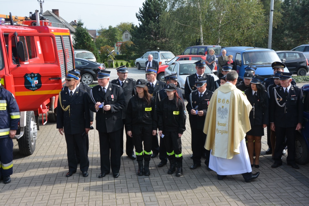 W niedzielę, 2 października 2016 r., odbyła się uroczysta Msza św. w intencji strażaków z Ochotniczej Straży Pożarnej w Leśnej, której przewodniczył i kazanie wygłosił ks. proboszcz Piotr Sadkiewicz. Po mszy św. został poświęcony nowy wóz strażacki Ochotniczej Straży Pożarnej w Leśnej.