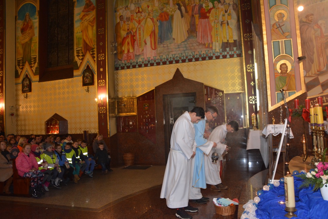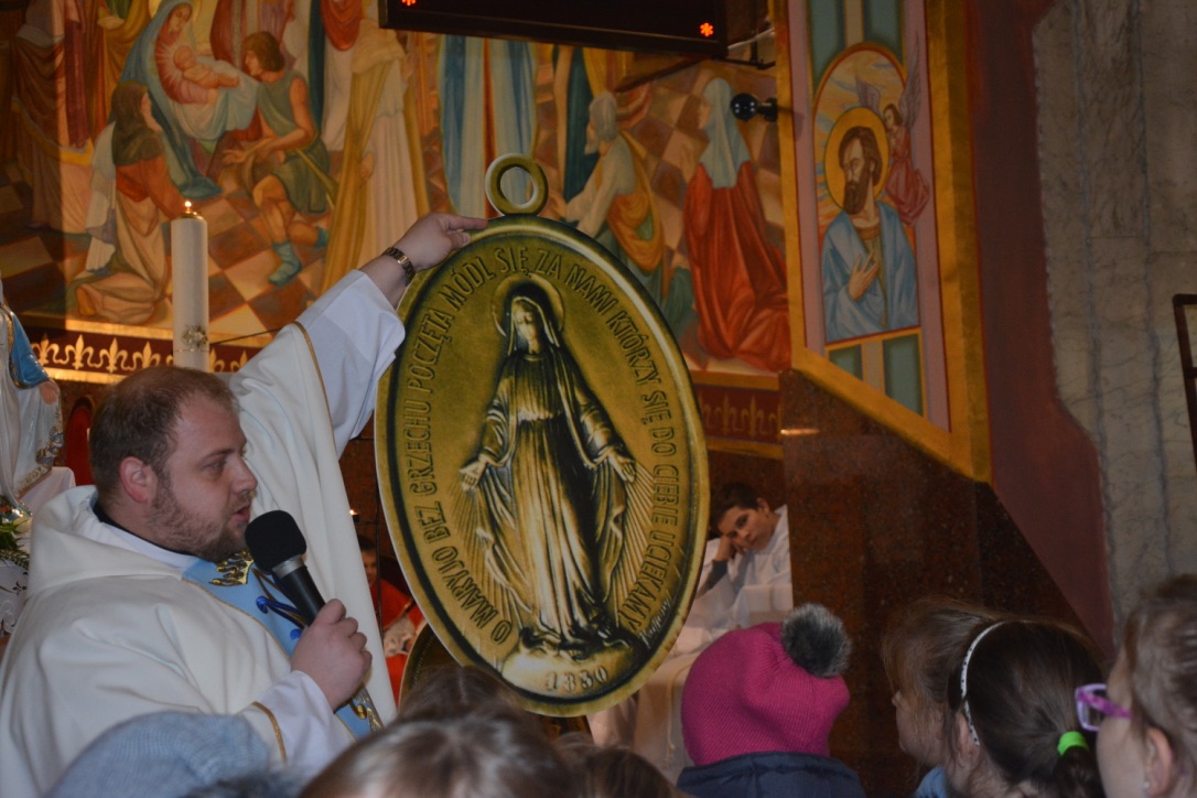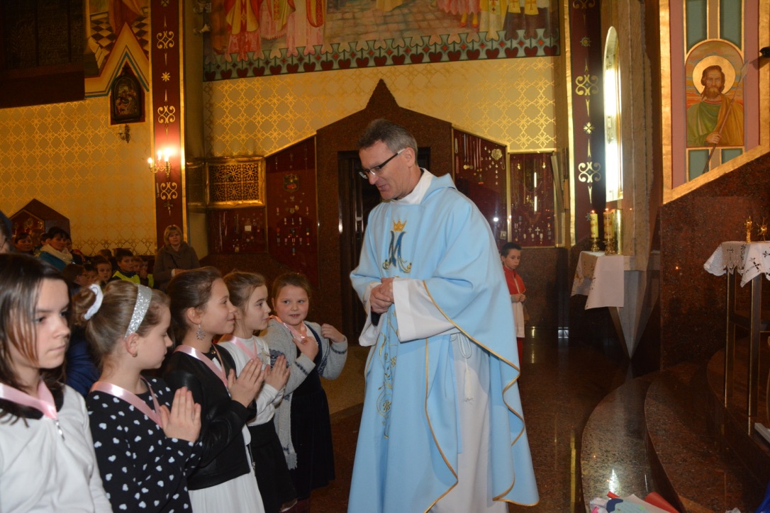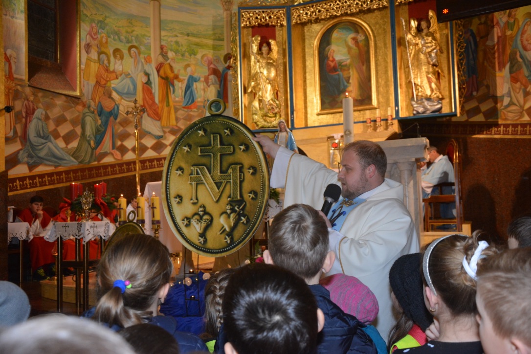 W czwartek, 8 grudnia 2016 r., obchodziliśmy Uroczystość Niepokalanego Poczęcia. Podczas mszy św. o godzinie 17:30 poświęciliśmy medaliki dzieciom z klasy III Szkoły Podstawowej. Był to także ważny dzień dla wspólnoty Dzieci Maryi, która obchodziła 18-lecie swojego istnienia. Dzieci i młodzież ze wspólnoty odnowiły swoje przyrzeczenia oraz otrzymały medale Niepokalanej.