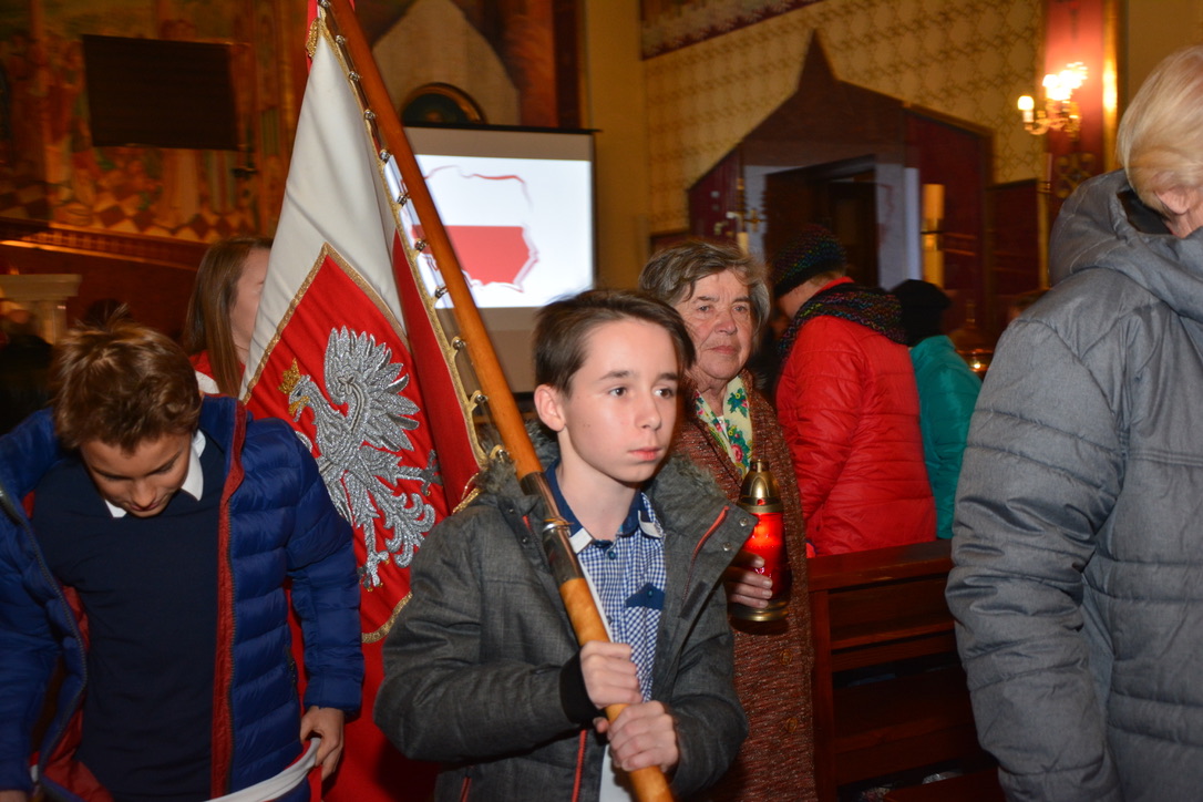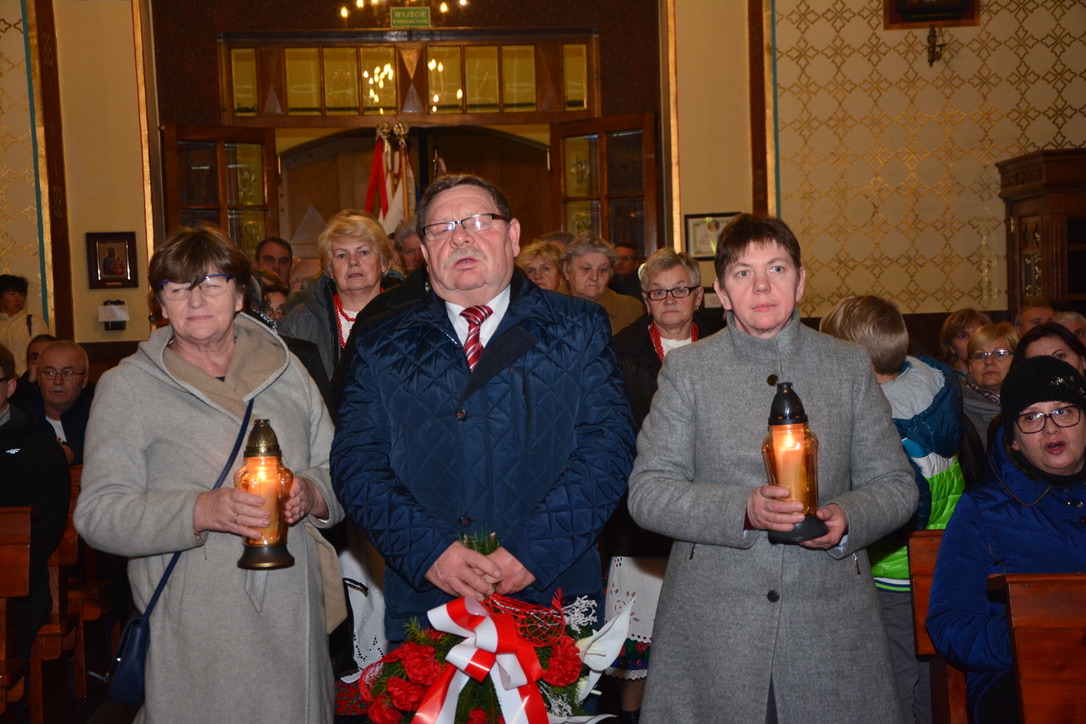 11 listopada 2017 r., obchodziliśmy 99. rocznicę odzyskania niepodległości. O godzinie 17:30 została odprawiona msza św. w intencji naszej Ojczyzny, której przewodniczył i homilię wygłosił ks. Proboszcz Piotr Sadkiewicz. Po mszy św. odbył się wieczór pieśni patriotycznych, który poprowadził Zespół Pieśni i Tańca „Pilsko”.