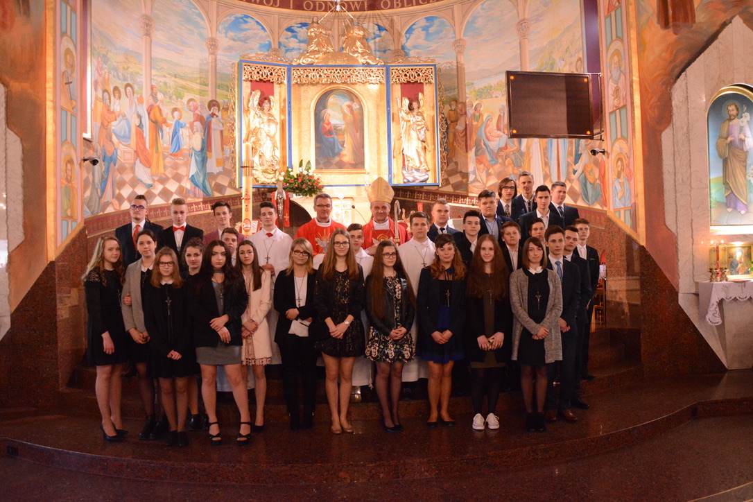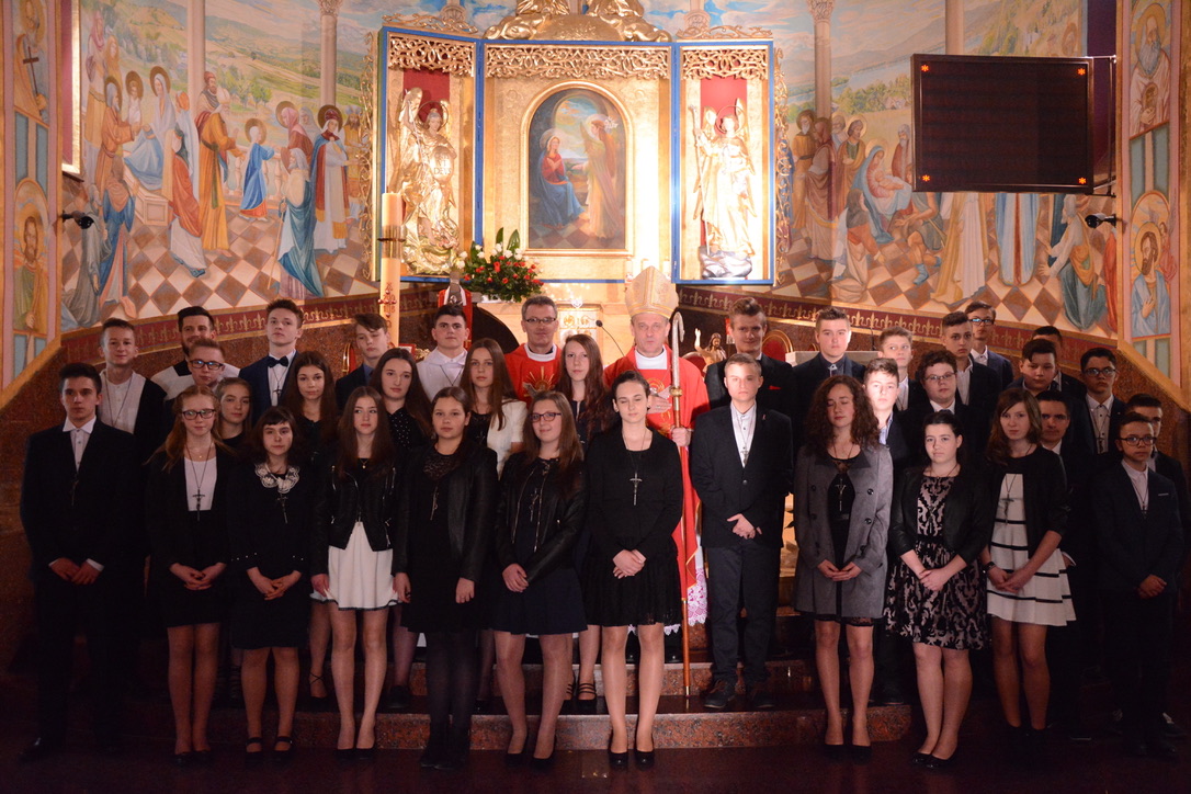 W czwartek, 12 kwietnia 2018 r., młodzież naszej Parafii z klas II i III Gimnazjum przyjęła z rąk ks. Biskupa Romana Pindla sakrament bierzmowania.