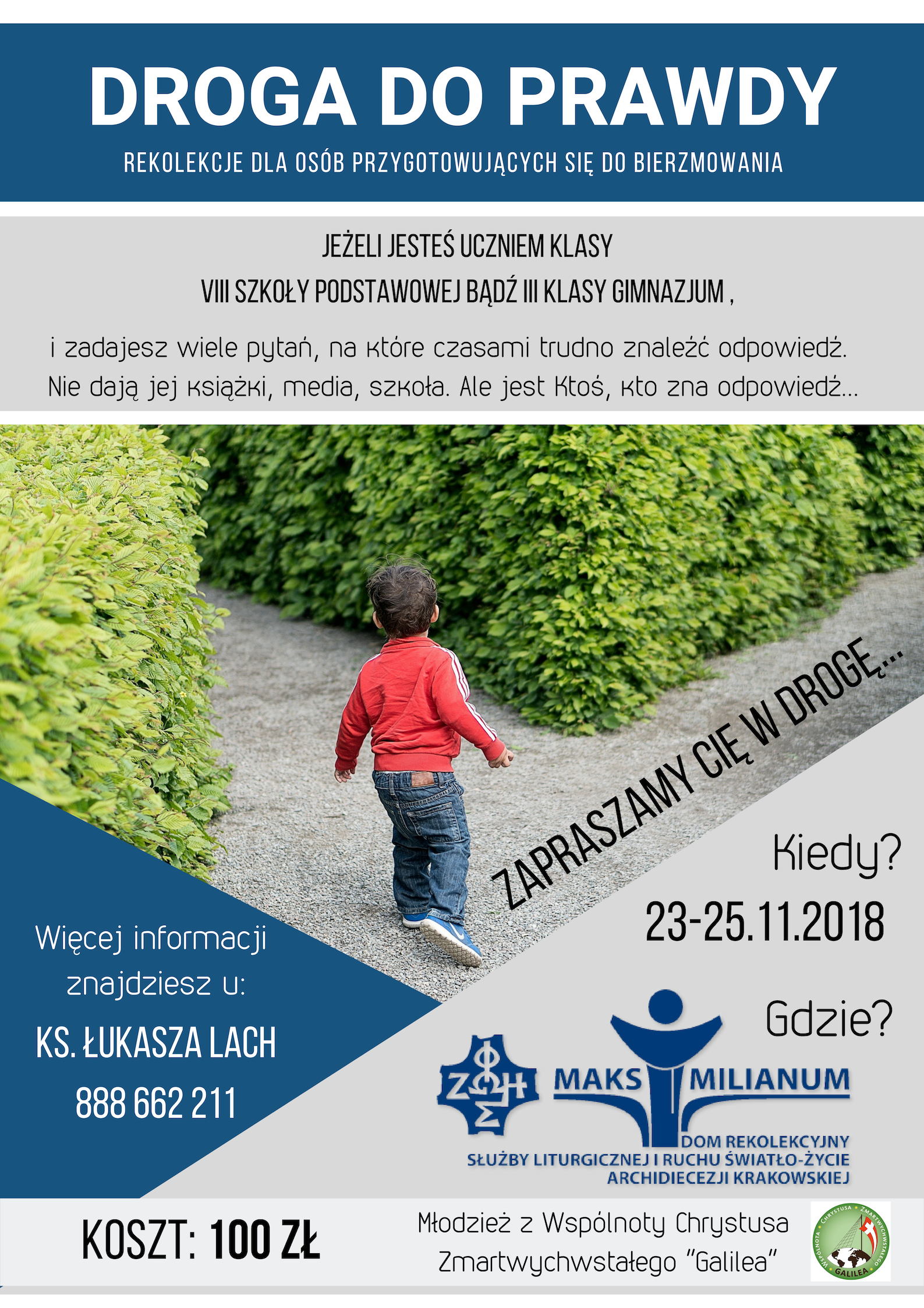 W dniach 23-25 listopada 2018 r. młodzież z naszej Parafii brała udział w Rekolekcjach Ewangelizacyjnych w Bystrej Podhalańskiej. Czas Drogi do Prawdy był dla nas szczególną okazją, aby jeszcze lepiej poznać Chrystusa i nawiązać z nim prawdziwą relację przyjacielską. Składamy serdeczne podziękowania Młodzieży ze Wspólnoty Galilea za przygotowanie i przeprowadzenie tych rekolekcji.