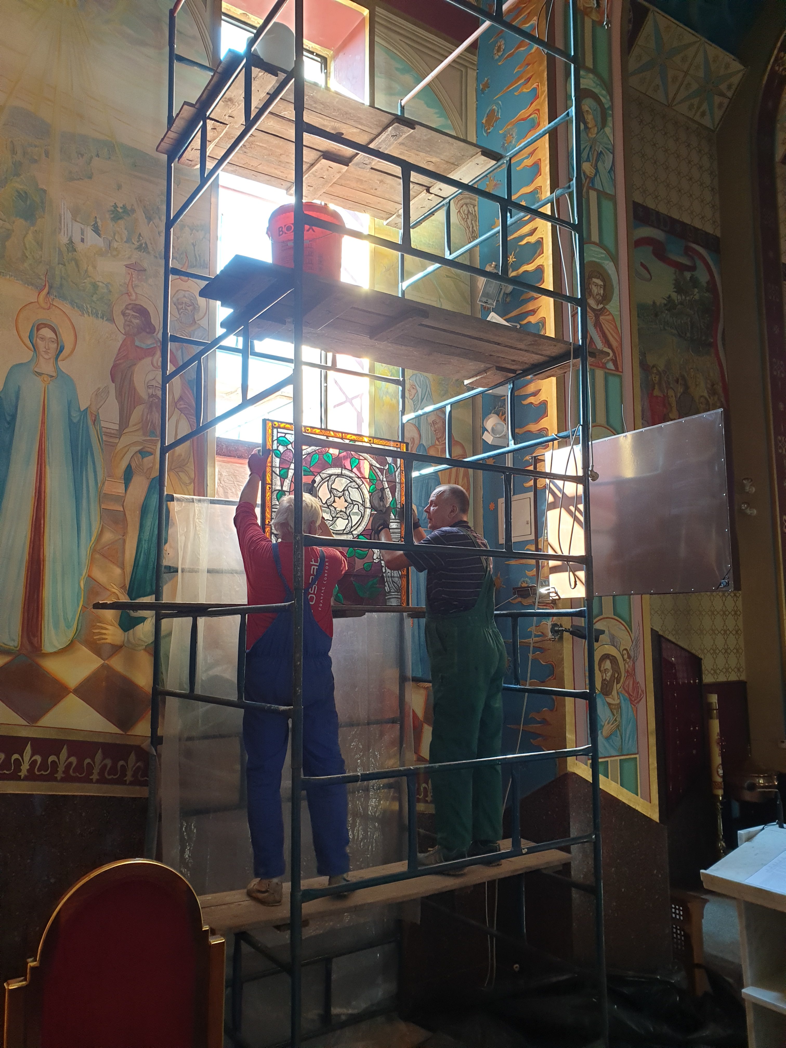 Drugi witraż w nowym oknie z szybami zespolonymi powrócił na swoje miejsce. To dopiero początek. Zostało jeszcze 6 dużych witraży