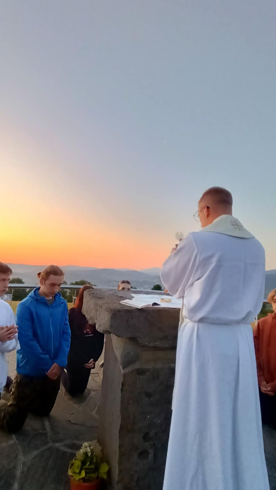 Grupa młodych ludzi wybrała się w sobotni poranek na wschód słońca, aby tam wspólnie modlić się na Mszy Świętej.