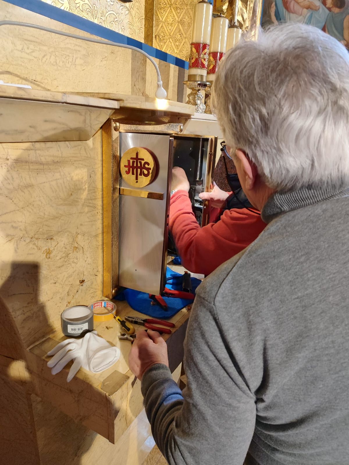 Drzwiczki do tabernakulum Po renowacji wróciły na swoje miejsce ozdobne drzwiczki do naszego tabernakulum. Paweł Tomala2026-03-08T12:38:16+01:002026-03-08| Share This Story, Choose Your Platform! FacebookXRedditLinkedInWhatsAppTumblrPinterestVkEmail